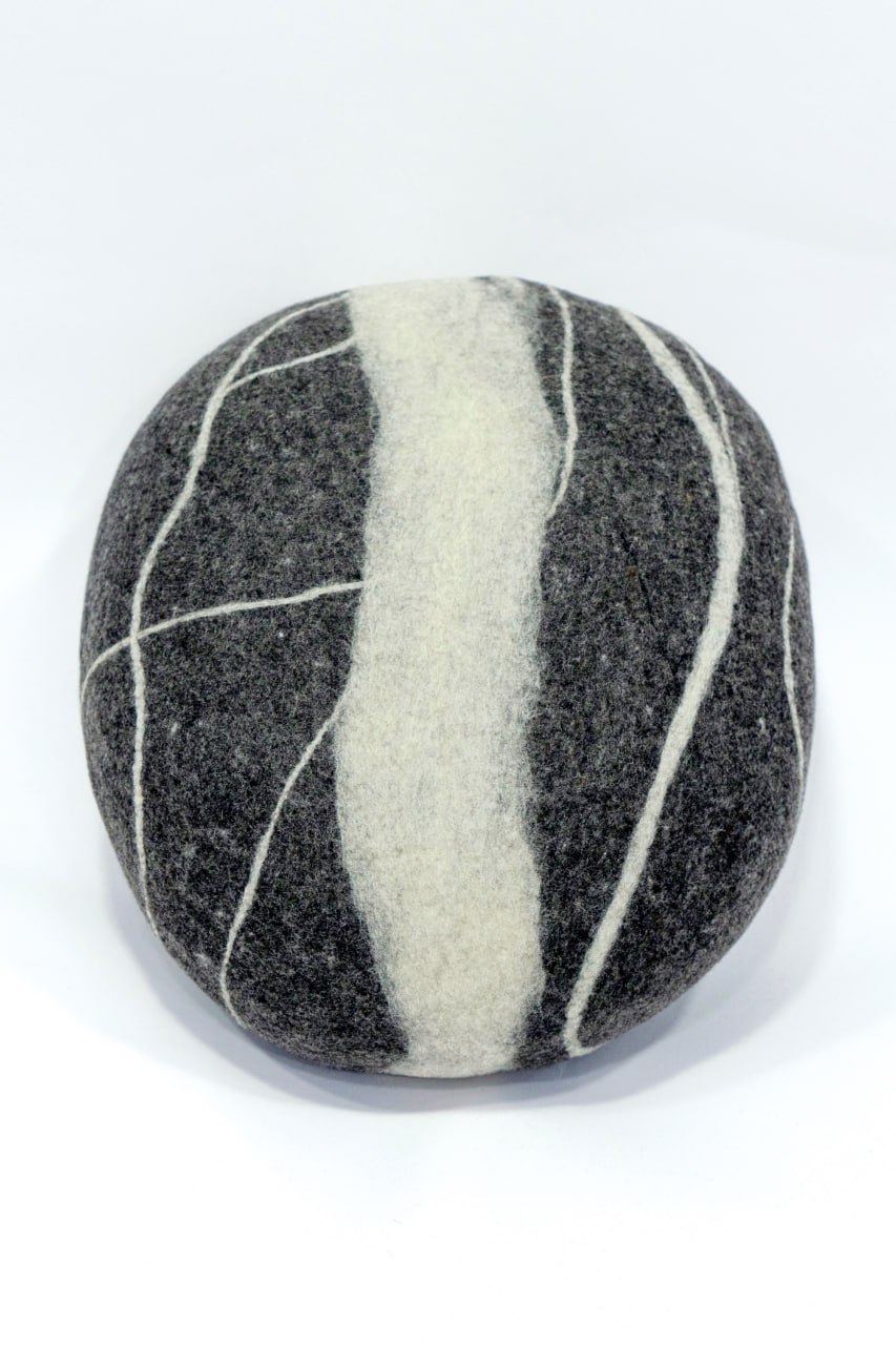 PILLOWS AND POUF-STONES are handmade from natural wool that preserves warmth. Seamless. Filled with Holofiber. Soft and Bouncy. Regain original shape easily. Streak patterns mirror nature itself, creating an illusion of real stone.