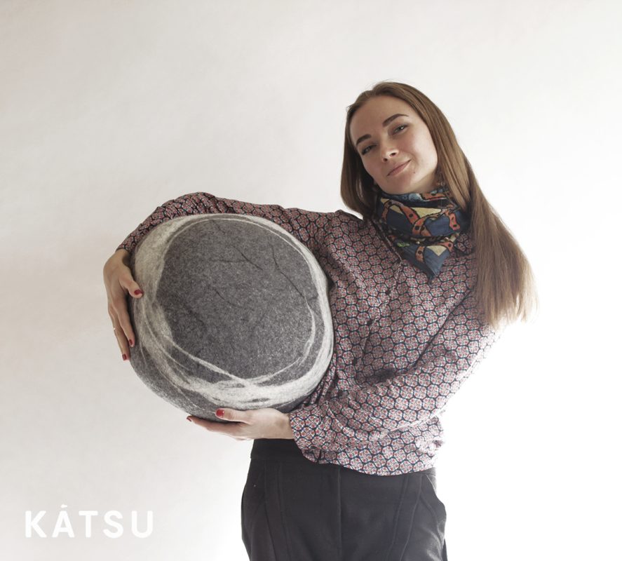 Natural felted wool. Soft stone-pouf. Model «Bongo». Like real rocks and stones. KATSU is a wool ottomans, pillows, cushions and poufs